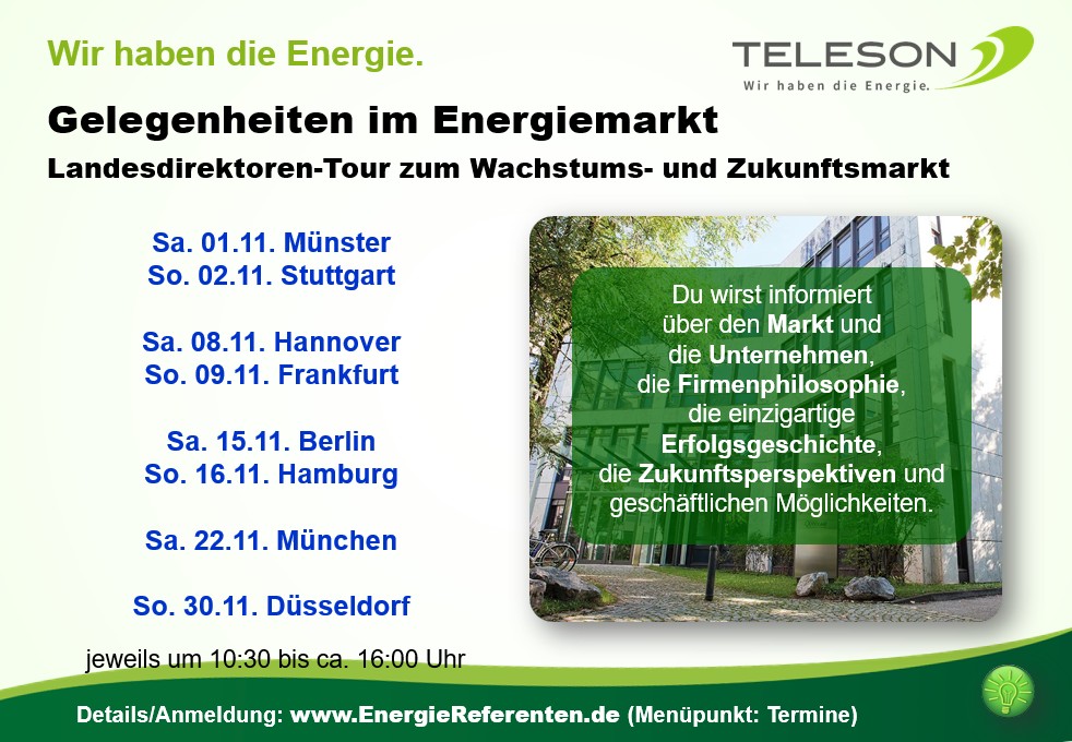 Teilnahmebedingungen: Du bist neue VP mit einer eigenen VP-Nr. in unserer Landesdirektion A. Trapp und optional bereits an einer EnergieGrundSchulung (EGS) teilgenommen.